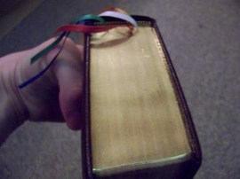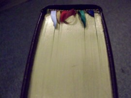 As you can see from the photos, the book has six ribbons. Have them placed so as to jump to parts of mass and to prayers I use regularly. The gilding is holding up well, with some wear around the ribbons but that is to be expected.