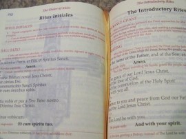 The Order of Mass is given in both English and Latin for those who attend the Latin Novus Ordo, or if you are a student of Latin and want to make your own judgment of the new ICEL translation.